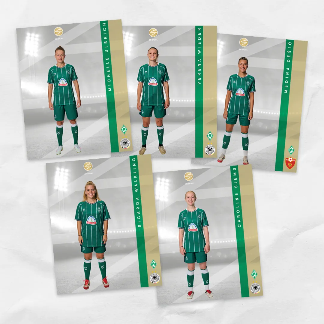 Ein zentraler Teil unserer Zusammenarbeit sind die Spielerinnen-Visuals. Für alle Athletinnen, die SEI SPORT vertritt, entwickle ich ein einheitliches Layout, das sowohl auf der Homepage als auch in den Sozialen Medien eingesetzt wird. Die farblichen Akzente passen sich jeweils dem aktuellen Verein der Spielerin an – so entsteht ein stringentes, modernes und absolut wiedererkennbares Design mit starkem Wiedererkennungswert.