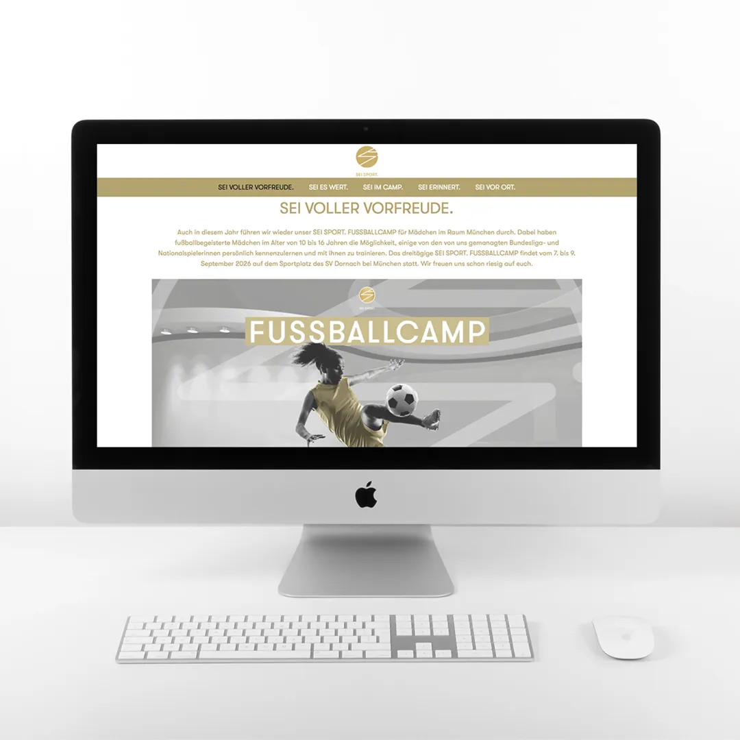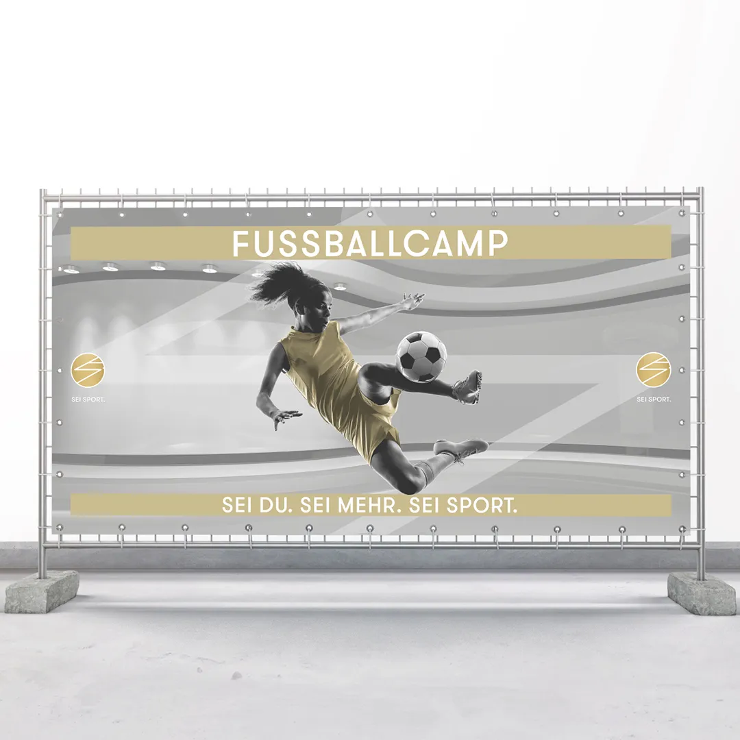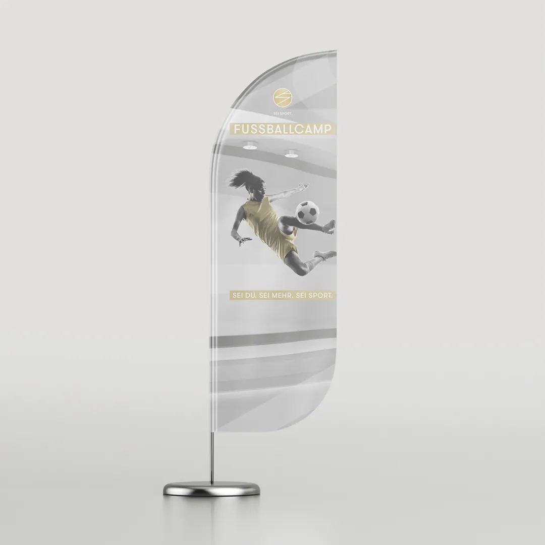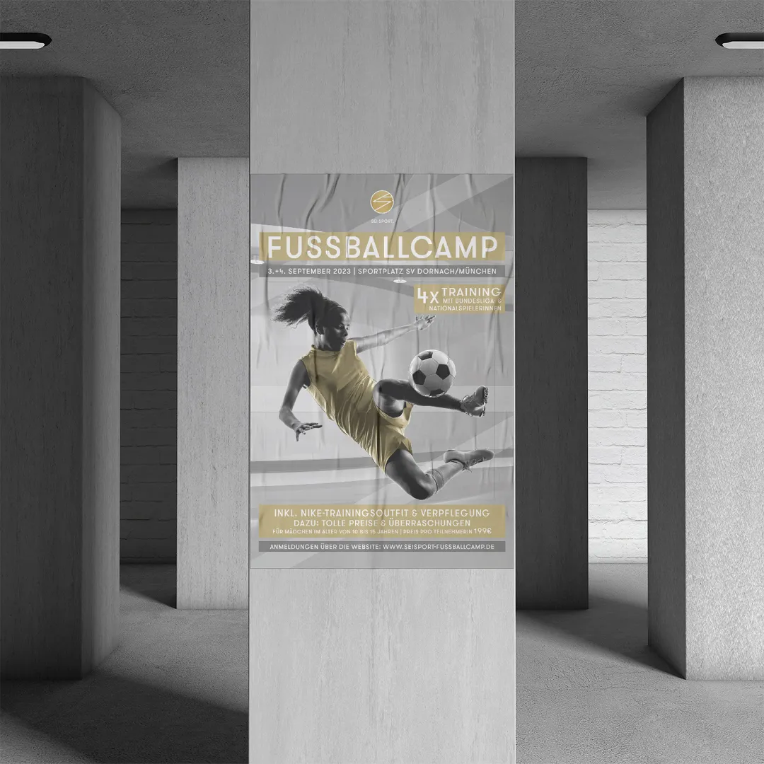Seit zwei Jahren gestalte ich die komplette Vorab-Werbung – online wie offline – für das SEI SPORT Fußballcamp, das speziell für junge Mädchen organisiert wird. Dazu gehören Flyer, Social-Media-Visuals und diverse Werbetechnik vor Ort, wie Beachflags, Bauzaunbanner und weitere Elemente im typischen SEI SPORT Look.